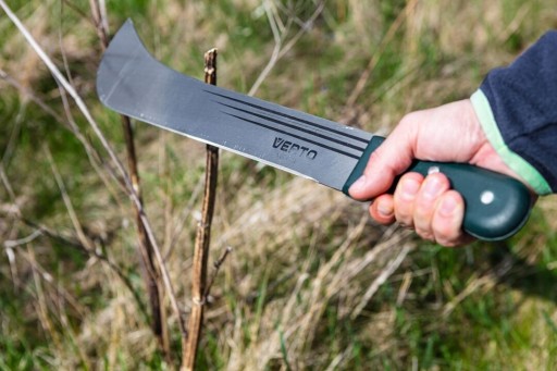 Maczeta ogrodowa 18" 15G191 VERTO to przydatne narzędzie ogrodowe ze specjalistycznym ostrzem i długiej powierzchni cięcia. Maczeta posiada całkowitą długość 455 mm. Została wykonana z hartowanego, niezwykle wytrzymałego ostrza oraz drewnianego, ergonomicznego uchwytu, pewnie leżącego w dłoni. Rękojeść mocowana jest za pomocą nitów, dzięki czemu jego trwałość jest jeszcze większa. Z pomocą maczety można sprawnie wykarczować zarośla, podciąć krzewy lub drzewka oraz okrzesać gałęzie czy konary. Ogrodnicza marka VERTO oferuje narzędzia użyteczne na lata.