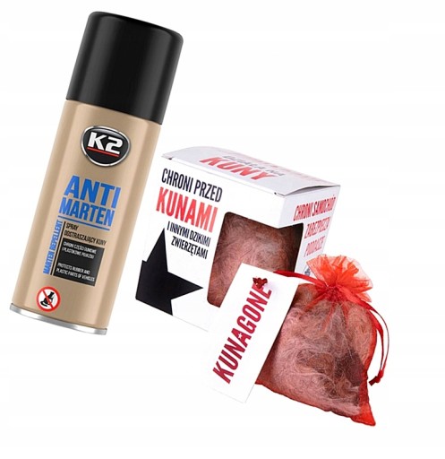 K2 ANTI MARTEN to wysoce skuteczny środek chroniący elementy samochodu przed uszkodzeniem ze strony kun i gryzoni. Zapobiega przegryzaniu kabli, przewodów czy niszczeniu elementów wygłuszenia, czego efektem mogą być kosztowne awarie pojazdu.