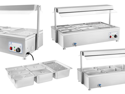Profesjonalny bemar to wydajne, solidne i bardzo łatwe w obsłudze urządzenie gastronomiczne. Dysponuje elementem grzewczym, a także lampą halogenową służącymi do podgrzewania i utrzymywania temperatury zup, sosów, ryżu, mięs, ziemniaków, wędlin, gulaszów itp. Produkt wyposażony w 6 pojemników GN świetnie spisuje m.in. w hotelach, barach szybkiej obsługi, restauracjach, kantynach, bufetach, a także podczas kolonii, obozów lub eventów