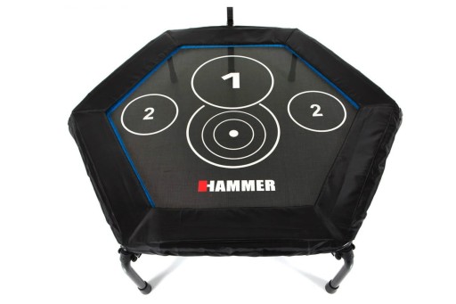 Jedna z najlepszych trampolin w Europie. Mata do skoków została wykonana z bardzo wytrzymałego tworzywa PP Mesh. Gumy naciągające batut są bardzo grube i wytrzymałe. Ich właściwe naciągnięcie sprawia, że stawy osób trenujących są bezpieczne (nawet przy codziennych i intensywnych treningach). Sześciokątna konstrukcja wykonana jest z grubych rurek, które zapewniają stabilność i przyczepność do podłoża. Zamontowana rączka urozmaica ćwiczenia.Skoki na Trampolinie HAMMER Cross Jump są wysokie, komfortowe i miękkie, a sam sprzęt będzie służył przez wiele lat.W porównaniu z praktycznie wszystkimi innymi sportami, trampolina spala ogromną ilość kalorii i spala w szybkim tempie tłuszcz. W zależności od intensywności na trampolinie HAMMER Cross Jump możemy spalić do 1200 kalorii na godzinę. Skoki w trampolinie równocześnie trenują około 400 mięśni. Wysokiej jakości gumy naciągające batut minimalizują naprężenia stawów. Trampoliny fitness są zalecane przez profesjonalnych sportowców, fizjoterapeutów i organizacji, takich jak NASA: Rebound Exercise.Punkty skoków na trampolinie HAMMER Cross Jump, zapewniają doskonałą motywację do ćwiczeń i sprawią, że trening stanie się jeszcze skuteczniejszy. W przeciwieństwie do tradycyjnych trampolin, okrągłe znaczniki ułatwiają doskonalić sekwencję ćwiczeń i szkolić choreografię. Regulowana poręcz z uchwytem zapewnia maksymalne bezpieczeństwo podczas treningu o dużej intensywności. Jest to ważne dla początkujących i osób starszych, które szczególnie potrzebują poczucia bezpieczeństwa i stabilności podczas ćwiczeń. Uchwyt ułatwia wykonanie szybszych lub bardziej wymagających sekwencji ćwiczeń.Filmy instruktażowe w wersji DVD o wartości 99 zł zawierają: