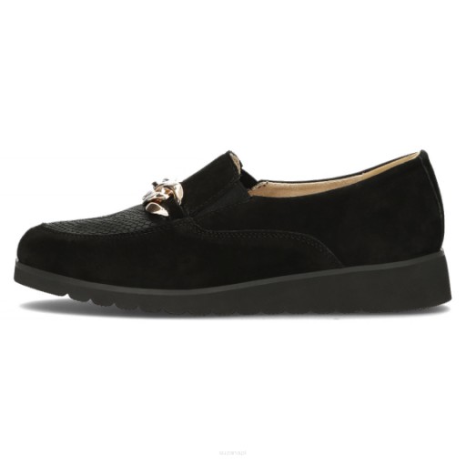 Czarne skórzane mokasyny damskie ze złotym łańcuchem FILIPPO DP3696/22