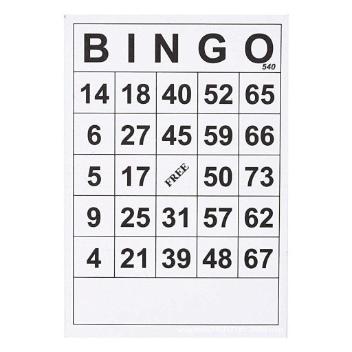 KARTY BINGO: Zawiera 120 czarno-białych kart bingo (łącznie 120 kart).
