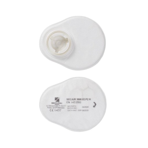 Filtry SECAIR 3000.02 P2 R po skompletowaniu z dwufiltrową półmaską lub maską, chronią układ oddechowy przed aerozolami z cząstek stałych (pyły, dymy) i ciekłych (mgły), o ile stężenie fazy rozproszonej nie przekracza wartości 10 x NDS (Najwyższe Dopuszczalne Stężenie).
