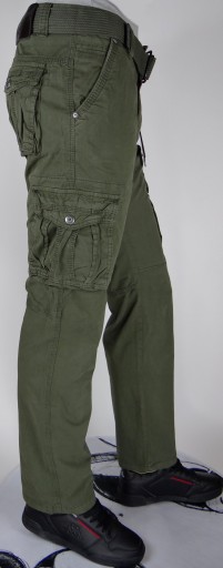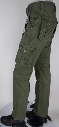 - Spodnie męskie w kolorze ZIELONYM, z dodatkowym paskiem parcianym w komplecie.