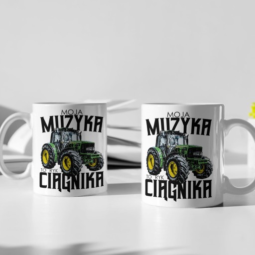 Kubek z nadrukiem MUZYKA RYK CIĄGNIKA z TRAKTOREM - to idealny pomysł na prezent ⭐️