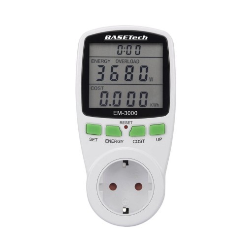 Za pomocą urządzenia do pomiaru kosztów energii można łatwo zmierzyć zużycie prądu przez urządzenia. Oprócz zużycia energii elektrycznej możliwe jest również określenie emisji CO2 i kosztów energii elektrycznej.