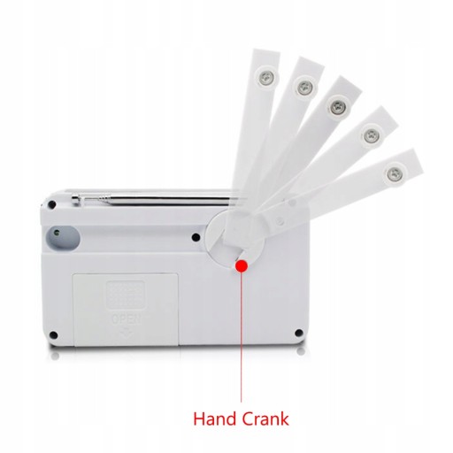 - Tryb ładowania: korba ręczna, energia słoneczna, ładowanie USB DC 5 V