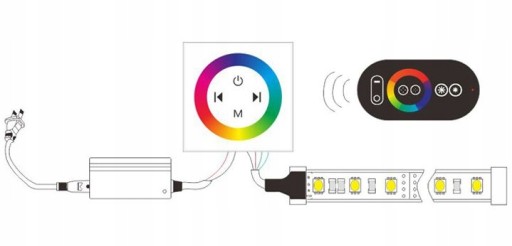 Kontroler, sterownik LED RGB z dotykowym pilotem radiowym.
