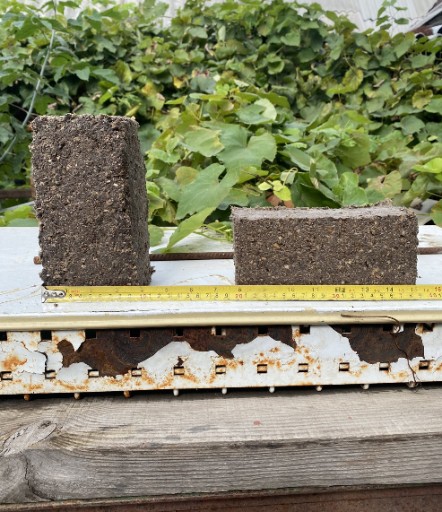 Prasa produkuje brykiety 18x9 cm 2 szt. o wysokości 7-8 cm w zależności od surowca.