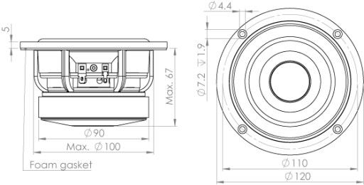The 4.75” transducers WF120BD03 (4 ohm) and WF120BD04 (8 ohm) were designed as high performance bass and midrange units for very compact monitors and high-end hi-fi speakers.