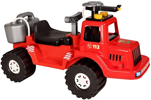 Zabawa z wozem strażackim to aktywna i ruchowa zabawa, która rozwija motorykę dziecka, sprawność ruchową oraz mięśnie nóżek i rączek. Jeździk został wyprodukowany w Polsce. Wykonany jest z wysokiej jakości i nieszkodliwego tworzywa sztucznego. Jeździk służy do zabawy wyłącznie w miejscach do tego przeznaczonych takich jak: wyłączone z ruchu drogowego alejki parkowe, deptaki, podwórka osiedlowe czy też ogrodzone place zabaw, wyłącznie pod opieką osoby dorosłej.
