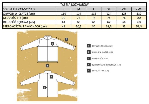 Kurtka wykonana została z kilkuwarstwowej tkaniny Softshell, która jest połączeniem poliestru oraz spandexu. Jest to ważna cecha w kontekście uprawiania aktywności w terenie ze względu na prowadzoną wymianę cieplną. a co za tym idzie bardzo dobrą oddychalność materiału. Softshell Convoy 2.0 jest świetnym rozwiązaniem na niższe temperatury bez dużych opadów deszczu. Lekki, wiatroodporny, a dzięki zastosowaniu impregnacji DWR do pewnego stopnia wodoodporny (krople wody swobodnie spływają po tkaninie). Kurtka w przeciwieństwie do popularnych Hardshelli jest miękka , a wewnętrzna warstwa została wyłożona cienkim polarem Microfleece, co zapewnia wysoki komfort termiczny.