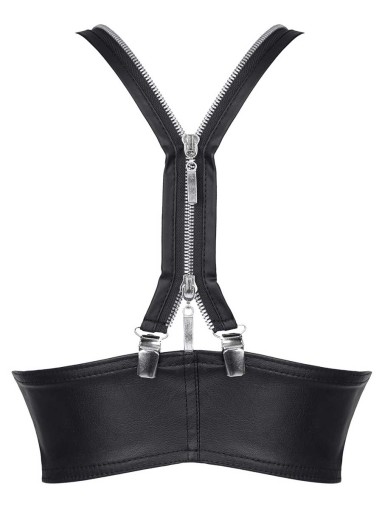 Top w całości został wykonany z czarnej, elastycznej ekoskóry z fakturą prawdziwej skóry. Jest miły w dotyku i wspaniale dopasowuje się do ciała.