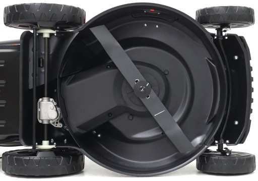 - Duże, łożyskowane koła pozwalają łatwo manewrować kosiarką