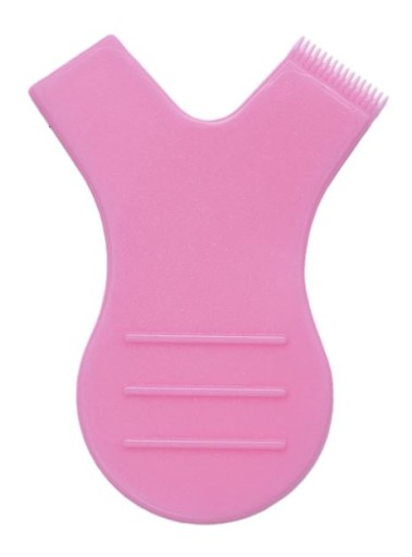 Plastikowy aplikator w kolorze różowym przeznaczony jest do ułożenia rzęs na silikonowym wałku podczas zabiegów trwałego podkręcenia i uniesienia rzęs. Jedno z ramion jest płaskie, natomiast drugie kończy się grzebyczkiem.