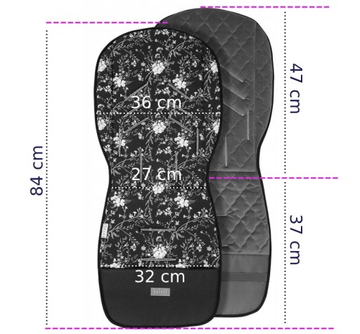 Dwustronna wkładka do wózka została doceniona zarówno przez mamy jak i małych spacerowiczów. Dzięki wysokiemu oparciu i i dodatkowym bocznym skrzydełkom, chroni Twoje dziecko od wiatru i zimna. Sprężyste piankowe wypełnienie dodatkowo amortyzuje, nadając miękkości podczas codziennej jazdy nawet w trudnych warunkach. Pokryta z jednej strony certyfikowaną, gładzoną bawełną 100%, z drugiej niezwykle miękkim i delikatnym velvetem elegancko pikowanym. Posiada otwory na pasy 5-cio punktowe, wodoodporny i łatwozmywalny podnóżek z gumą, która dodatkowo przytrzymuje wkładkę.
