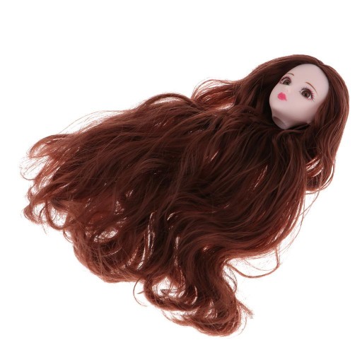 Opis: 1/6 kobiecej głowy lalki Bjd z czekoladowymi kręconymi włosami i oczami 3D - makijaż