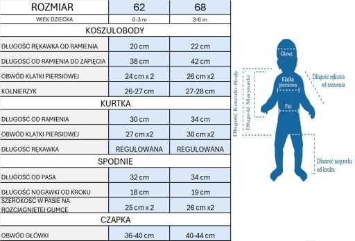 ROZMIAR UBRANEK Z TABELI PROPONUJEMY PORÓWNAĆ Z AKTUALNIE PASUJĄCYMI UBRANKAMI