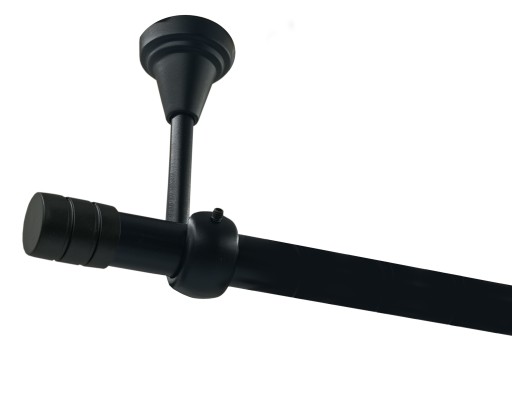 Przedmiotem aukcji jest KOMPLETNY METALOWY KARNISZ SUFITOWY pojedynczy o średnicy rurki fi 19mm w kolorze CZARNY MAT z zakończeniem FREZ.