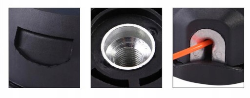 - Ważną cechą głowicy są metalowe wsuwki na wylotach żyłki pozwalające jej swobodnie wychodzić oraz zabezpieczyć przed przetarciem obudowy.