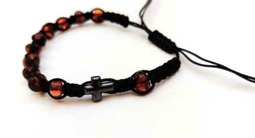Bransoleta Różaniec wykonana z Bursztynów Bałtyckich I HEMATYTU