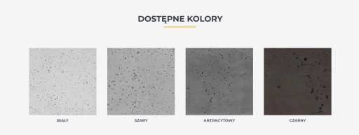Donice betonowe produkowane są w 4 kolorach: szarym, antracytowym (standard) oraz białym i czarnym (dopłata 10%). Jednakże donice w kolorze czarnym są niedostępne do użytku zewnętrznego ze względu na szybkie utlenianie się tego koloru w takich warunkach.