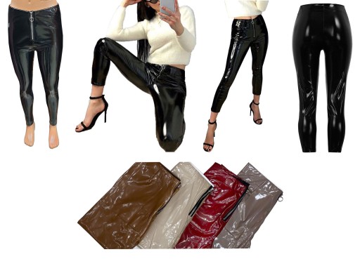 LEGGINSY WINYLOWE GETRY WINYL SPODNIE RURKI LATEKS Zapięcie zamek