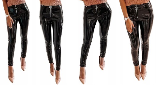 LEGGINSY WINYLOWE GETRY WINYL SPODNIE RURKI LATEKS Zapięcie zamek