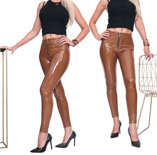 LEGGINSY WINYLOWE GETRY WINYL SPODNIE RURKI LATEKS Zapięcie zamek