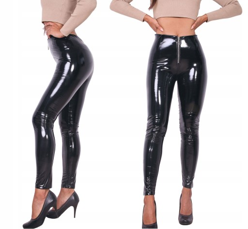 LEGGINSY WINYLOWE GETRY WINYL SPODNIE RURKI LATEKS Zapięcie zamek