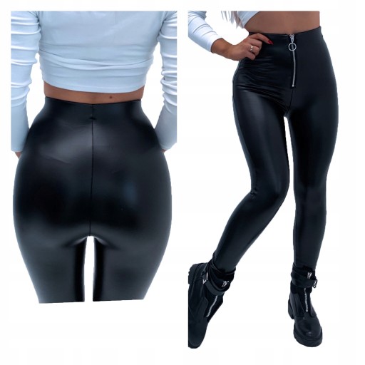 LEGGINSY WINYLOWE GETRY WINYL SPODNIE RURKI LATEKS Zapięcie zamek