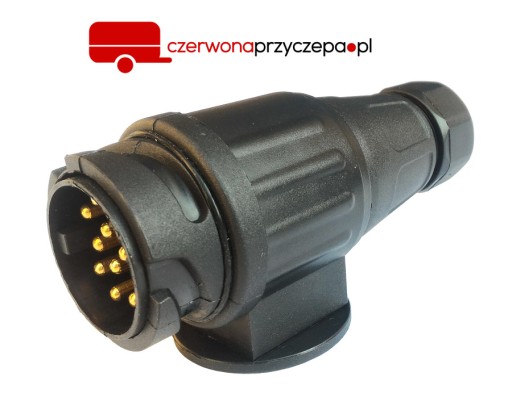 Wtyczka 13 PIN (13-polowa / 13-biegunowa) w solidnej plastikowej obudowie. Bardzo mocna i wytrzymała. Uniwersalna - pasuje do każdego gniazda 13-sto biegunowego, na 12V.