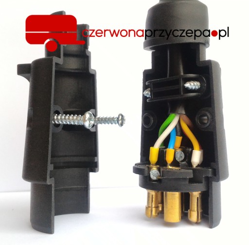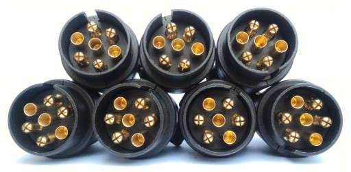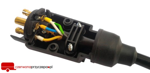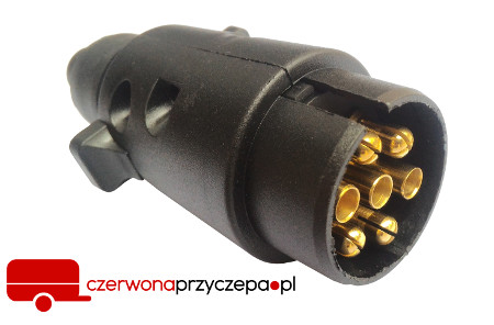 Wtyczka 7 PIN (7-polowa / 7-biegunowa) w solidnej plastikowej obudowie. Wytrzymała konstrukcja. Uniwersalna - pasuje do każdego gniazda 7-io biegunowego, na 12V lub 24V.