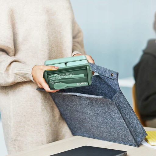 【BEZPIECZNY W UŻYCIU】 Plastikowe pudełko na lunch bento jest wykonane z materiałów przyjaznych dla środowiska, które można bezpiecznie podgrzewać w kuchence mikrofalowej i łatwo czyścić w zmywarce. Uwaga: Przed podgrzaniem należy wyjąć zastawę stołową (widelce i łyżki) z pojemnika przed podgrzaniem.
