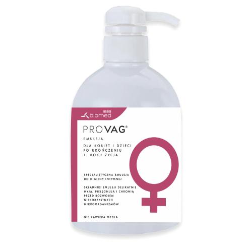 prOVag® emulsja to specjalistyczna, hipoalergiczna emulsja do higieny intymnej dla kobiet, dzieci (po ukończeniu 1. roku życia), alergików. Pomaga zapobiegać problemom intymnym, delikatnie myje i pielęgnuje, łagodzi podrażnienia, nawilża, przyspiesza regenerację, eliminuje nieprzyjemne zapachy. Wykazuje działanie hamujące rozwój niekorzystnych drobnoustrojów, przy jednoczesnej promocji wzrostu dobroczynnych Lactobacillus. Polecana jest szczególnie dla: alergików, kobiet podatnych na nawracające problemy układu moczowo-płciowego, kobiet ciężarnych, w połogu czy w menopauzie.