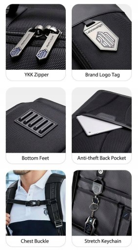 Plecak wyposażony jest w system antykradzieżowy. Głowna komora, w której przenoszony będzie laptop, może zostać zabezpieczona przed otwarciem, za pomocą kłódki wyposażonej w trzycyfrowy cyfr. Kłódka posiada również system TSA, dzięki któremu zamki mogą być odblokowane i kontrolowane przez organy bezpieczeństwa bez uszkodzeń na bagażu na lotnisku. System TSA w szyfrowanych kłódkach jest niezbędny przy podróży do USA, Kanady, Japonii czy Australii.