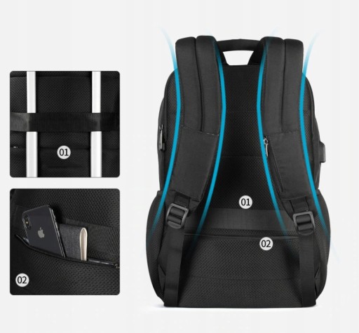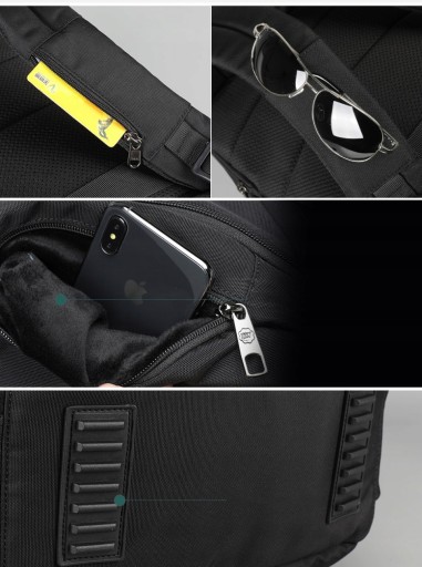 Plecak posiada bardzo miękką komorę, która ochroni laptopa, nawet w przypadku upuszczenia plecaka lub uderzenia nim o coś. Komora jest zapinana na zamek. Ponad to, plecak jest bardzo pojemny, a wiele kieszonek sprawia, że można przenosić w nim wszystko czego potrzebujemy.