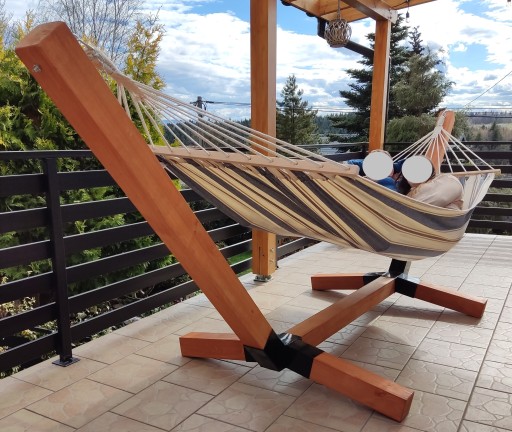 DREWNIANY STELAŻ PREMIUM XXL 95x95 mm + HAMAK 2osobowy (płótno)- ZESTAW KOMPLETNY