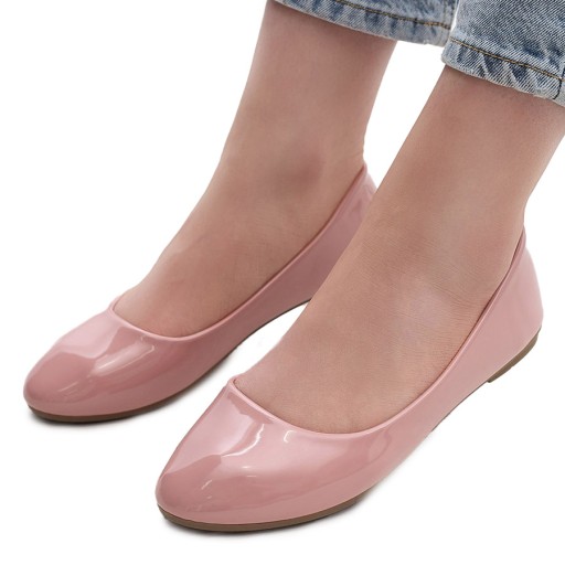 Klasyczne baleriny wykonane z lakierowanej eko-skóry z okrągłym noskiem. Miękka eko-skórzana wkładka z poduszeczkami dostarczy komfortu. Idealnie się sprawdzą do eleganckich i modnych stylizacji!