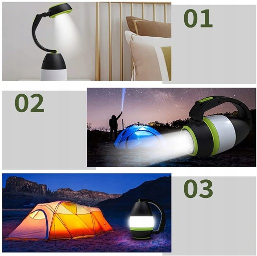 👍 Połączenie lampy kempingowej, przenośnej, stołowej i zasilacza awaryjnego. W zależności od potrzeb można go zastosować przy różnych okazjach.