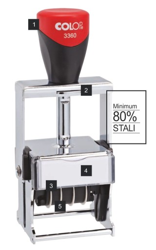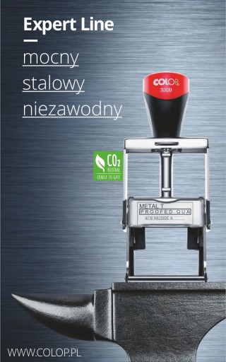 - Stalowa obudowa, zapewnia długotrwałe użytkowanie i stabilność podczas wykonywania pieczątki;