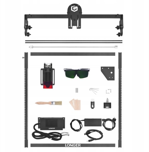 Laserowy grawer i frez LONGER Ray5, 5W-5,5W laserowa maszyna grawerująca ze skompresowanym miejscem 0,08 * 0,08 mm do drewna, metalu, inteligentnym interfejsem, 32-bitową płytą główną, obszarem grawerowania 400 x 400 mm