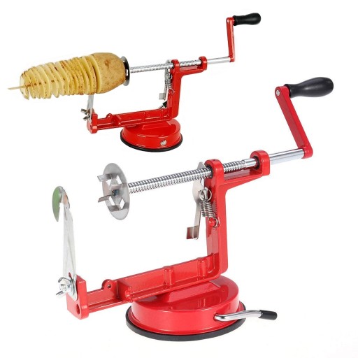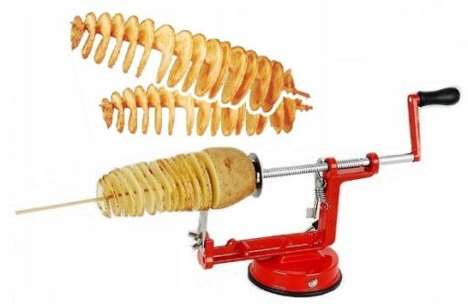Ręczna maszynka umożliwia w szybki i łatwy sposób pokroić ziemniaka w zakręcone frytki. Są to specjalnie pocięte ziemniaki na patyku, które następnie smażone są w gorącym oleju przez 3-4 minuty i podawane z różnymi przyprawami.