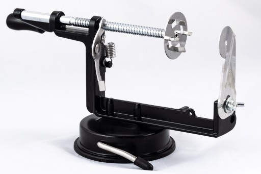 Maszynka wykonana jest ze stali nierdzewnej. Posiada stabilną podstawkę w formie przyssawki mocowanej do podłoża. Dzięki tej maszynce w prosty sposób można przygotować pyszne, zakręcone frytki, chipsy jak również pokroić w sposób dekoracyjny warzywa np. ogórka, marchewkę.