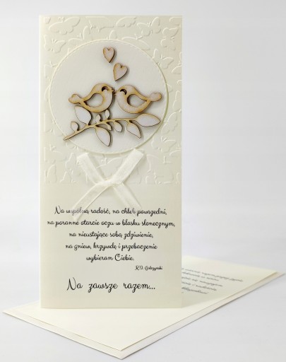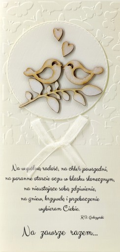 "Idźcie wiernie razem przez życie z dobrocią w sercu. Obdarzajcie się nawzajem nadzieją, miłością i radością. Niech Bóg Wam błogosławi każdego dnia!"