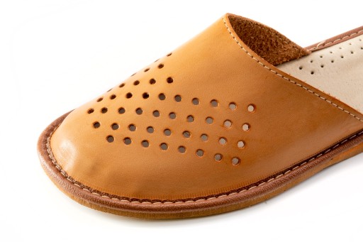 Kapcie zostały wykonane z najlepiej dobranych materiałów .Kapka cholewki pantofla jest wykonana z naturalnej skóry co sprawia, że idealnie dopasują się do tęgości stopy.
