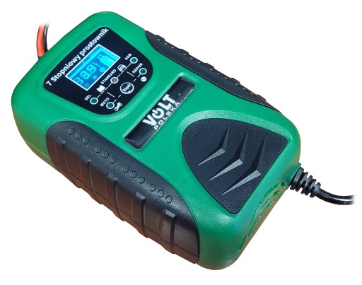 Prostownik automatyczny LCD 12V 8A COMPACT GREEN to automatyczny prostownik z 7-stopniowym ładowaniem akumulatorów tradycyjnych, akumulatorów kwasowo-ołowiowych, żelowych (GEL), AGM.