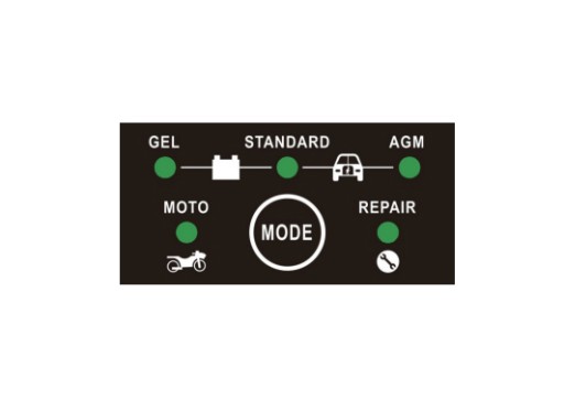 - REPAIR - Tryb naprawczy (trwa maksymalnie 16 godzin, przeznaczony do regeneracji tylko akumulatorów kwasowo-ołowiowych rozruchowych)