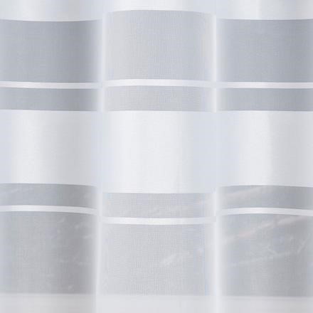Przedmiotem sprzedaży jest woalowa firana z atłasowymi pasami wykończona na dole fabrycznie ołowianką