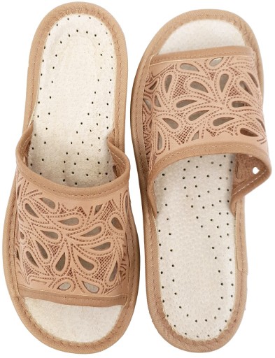 Pantofle są bardzo lekkie i wygodne, a piękne wykończenie nadaje im uroku